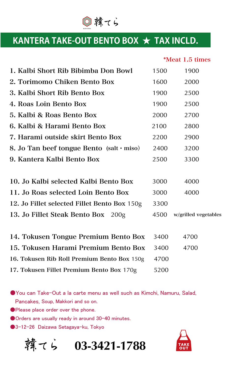 'Yakiniku Bento Box' and 'Kantera at Home Yakiniku Set' are available.